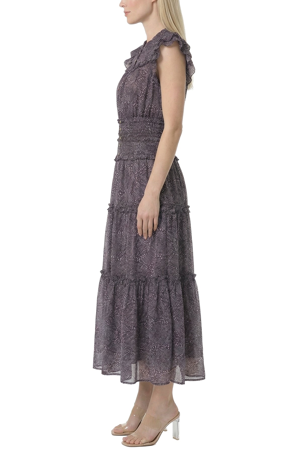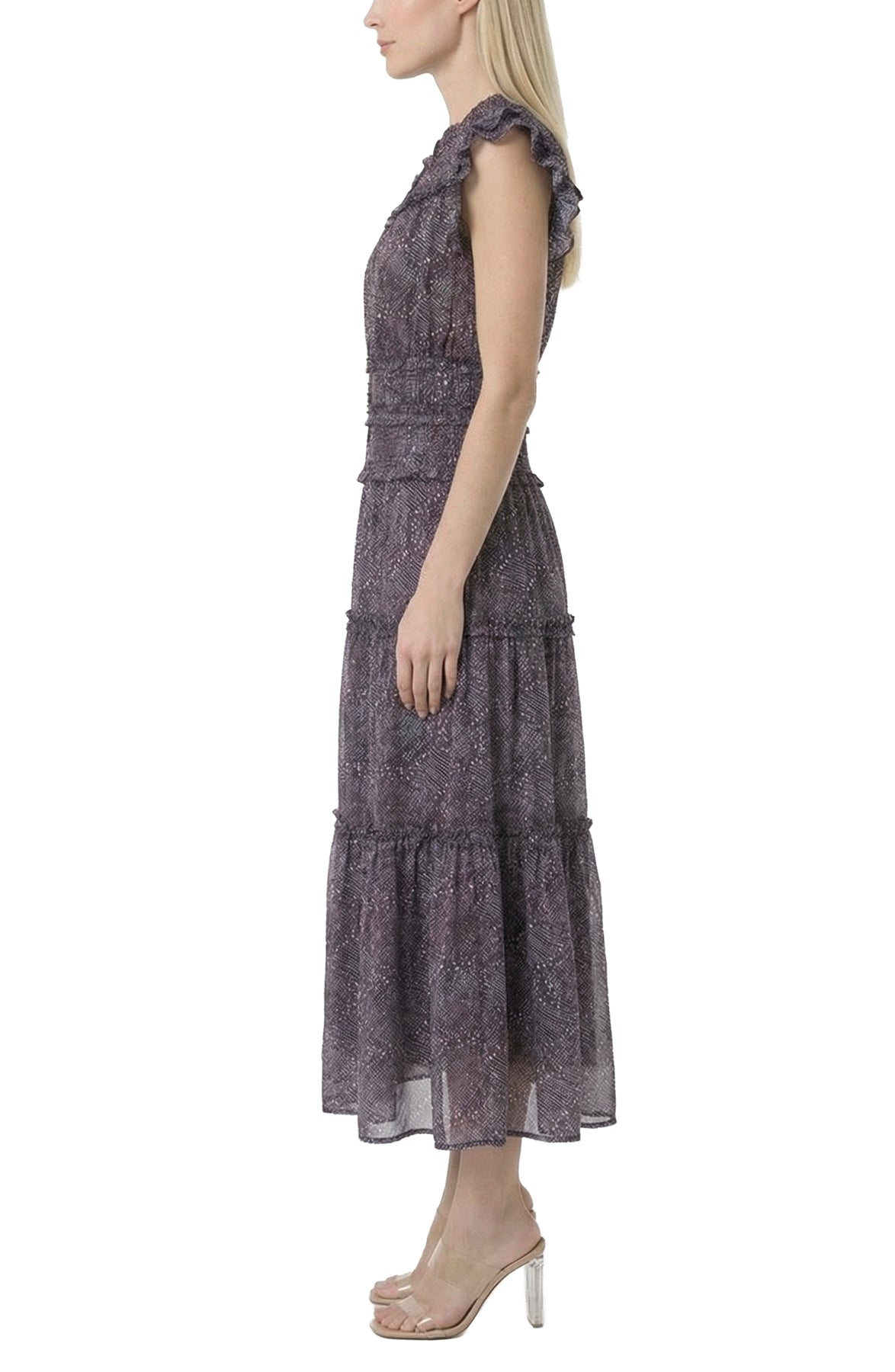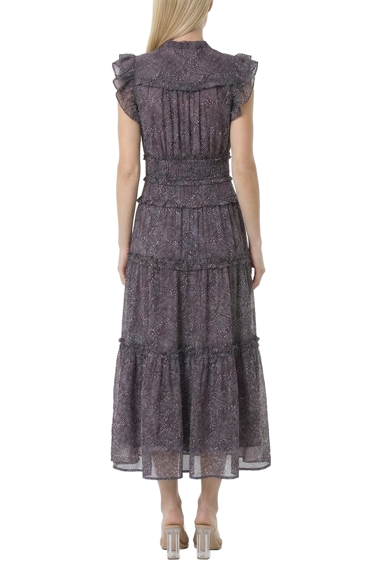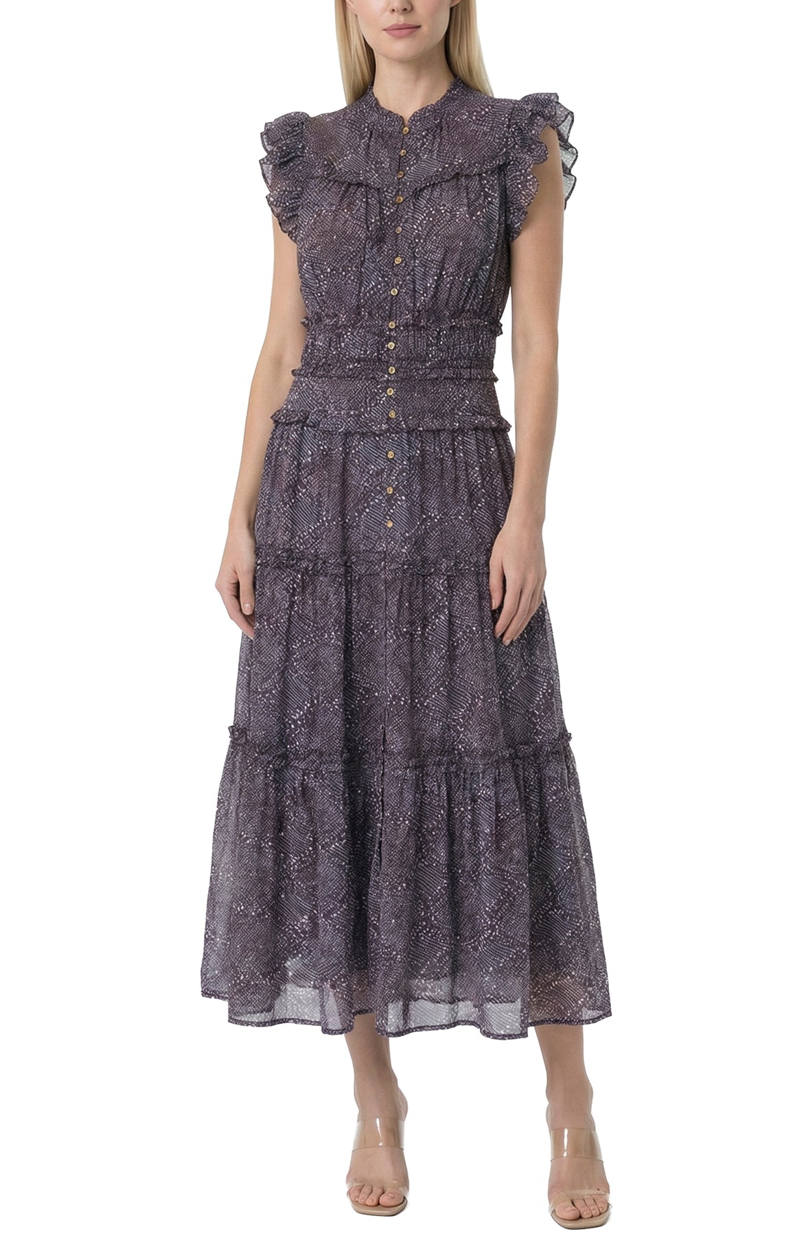 Meet the Ruffled Blue Midi Dress—romantic movement, effortless charm. A painterly blue pattern sets the scene, while cascades of ruffles add airy texture from neckline to hem.