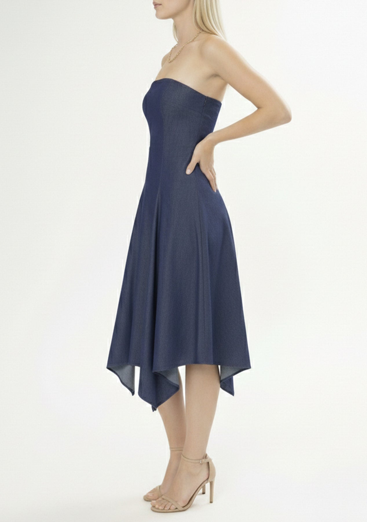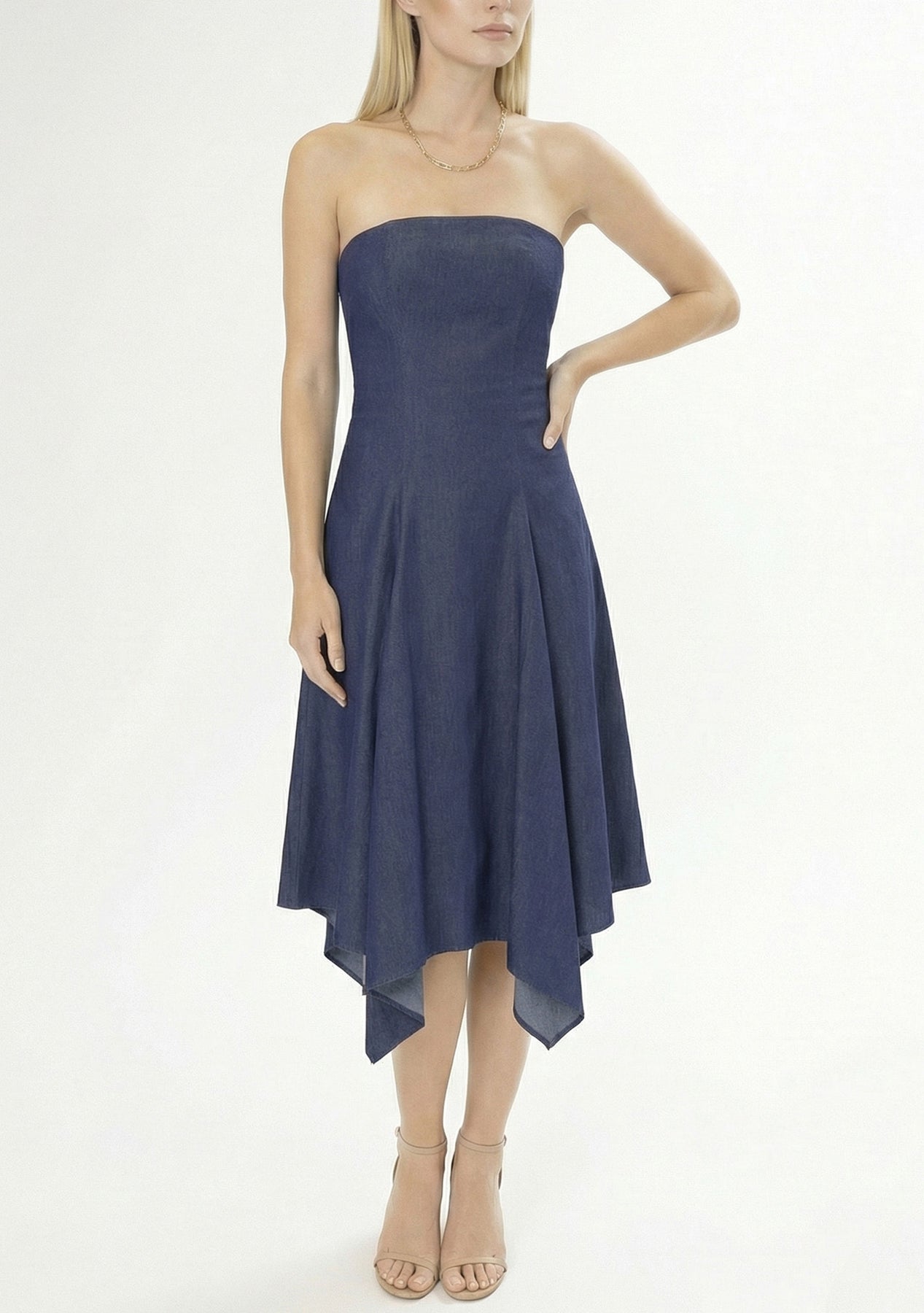 Effortlessly feminine, this strapless dress features a structured, figure-defining bodice that cinches the waist and supports the bust, paired with a light, flowy skirt that moves gracefully from waist to hem. The combination creates a flattering hourglass silhouette that’s both elegant and comfortable.