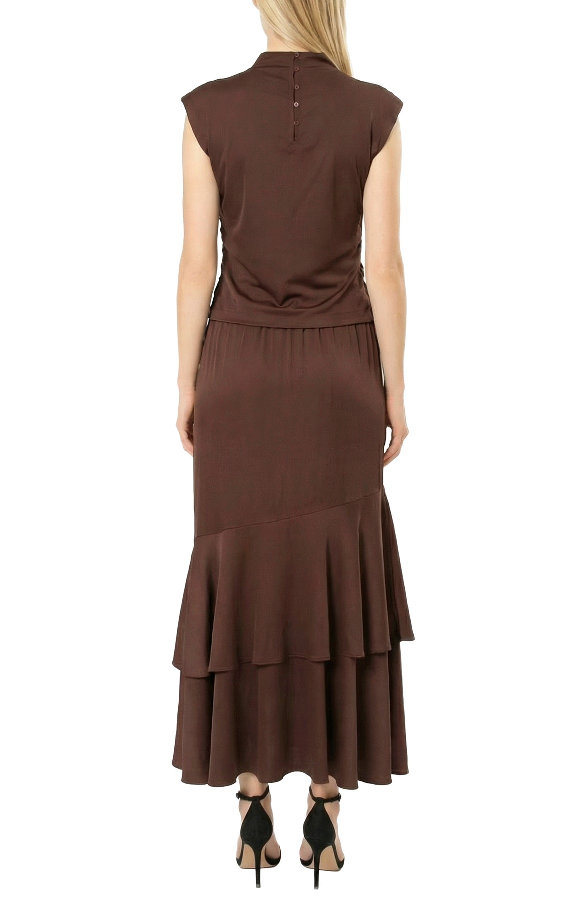 The Area Stars Avery satin top brings elevated effortless style with its sleek silhouette and smooth satin finish. Crafted with a relaxed mock neckline and short sleeves, it drapes beautifully and pairs seamlessly with tailored pants, skirts, or denim for versatile day‑to‑night looks.